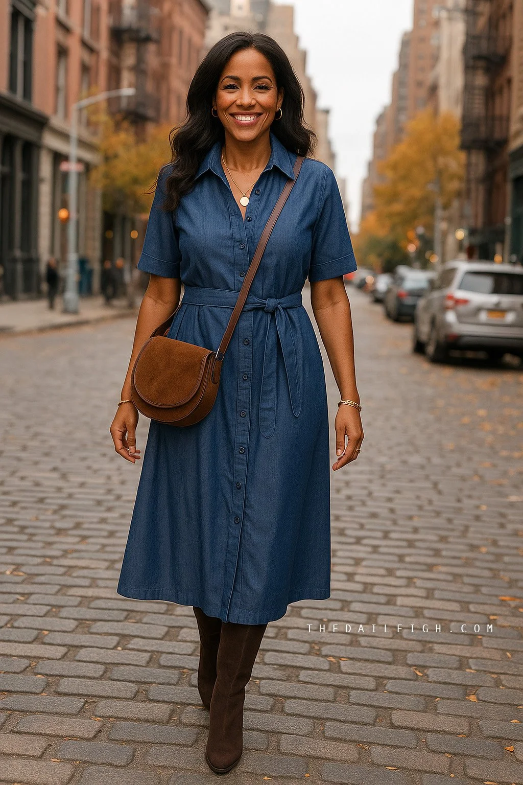 Grabbing a pair of jeans to throw on feels almost second nature once fall arrives, but denim doesn’t only belong in pant form. While jeans are the go-to for easy styling, a denim dress offers the same effortless appeal — you can pair it with just about anything. It’s a simple, versatile piece that instantly earns its place as a fall wardrobe staple.
