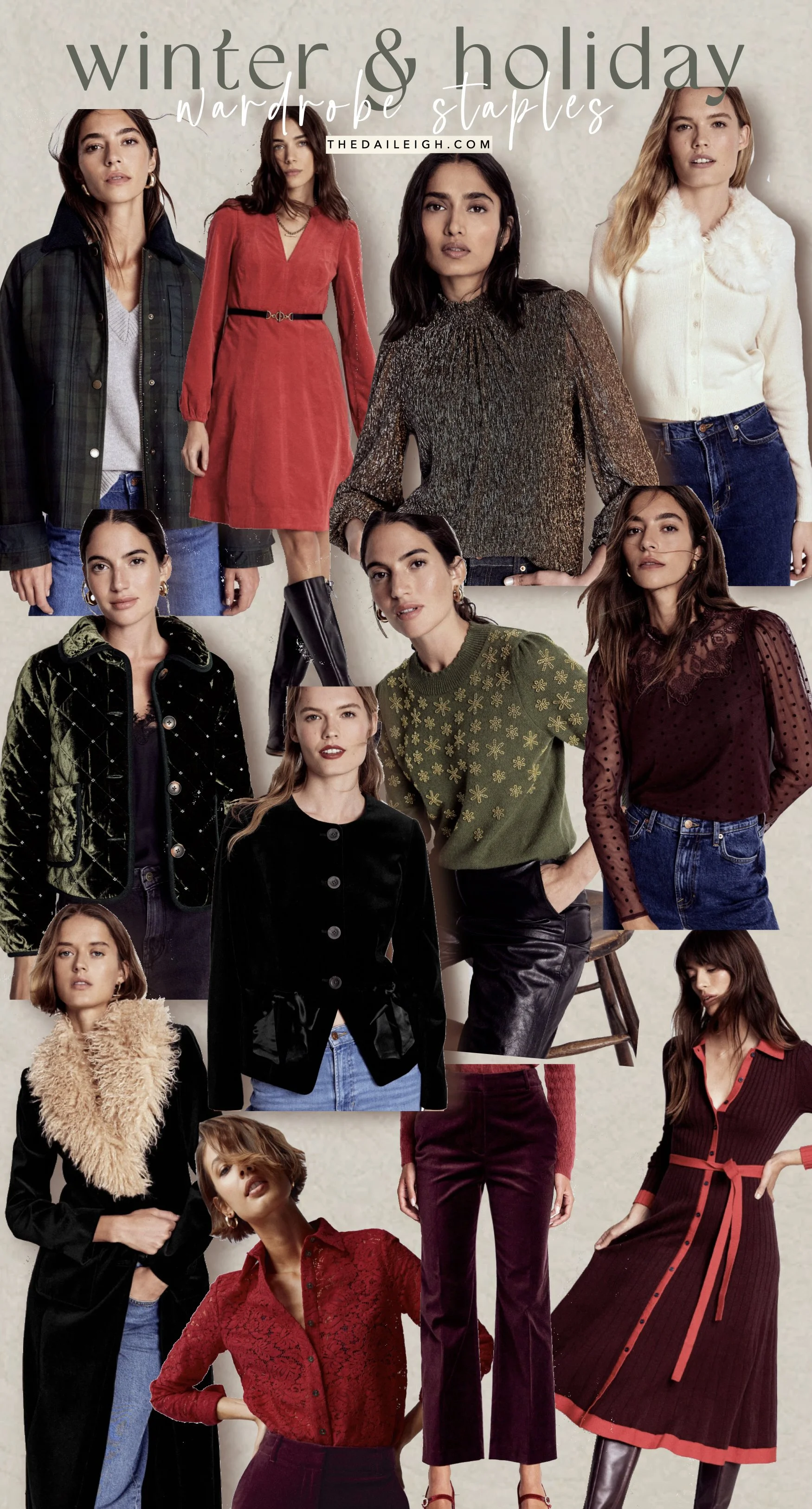The holiday season is here, and as our schedules fill with prep, errands, and last-minute shopping, figuring out what to wear can quickly fall to the bottom of the list. The good news? You don’t need a brand-new wardrobe for winter. Most of your fall pieces transition beautifully into the colder months, and with a few seasonal additions and richer colors, your closet will feel refreshed and winter-ready. This round-up highlights styles you can wear every day—and the polished pieces that work perfectly for your holiday gatherings.
