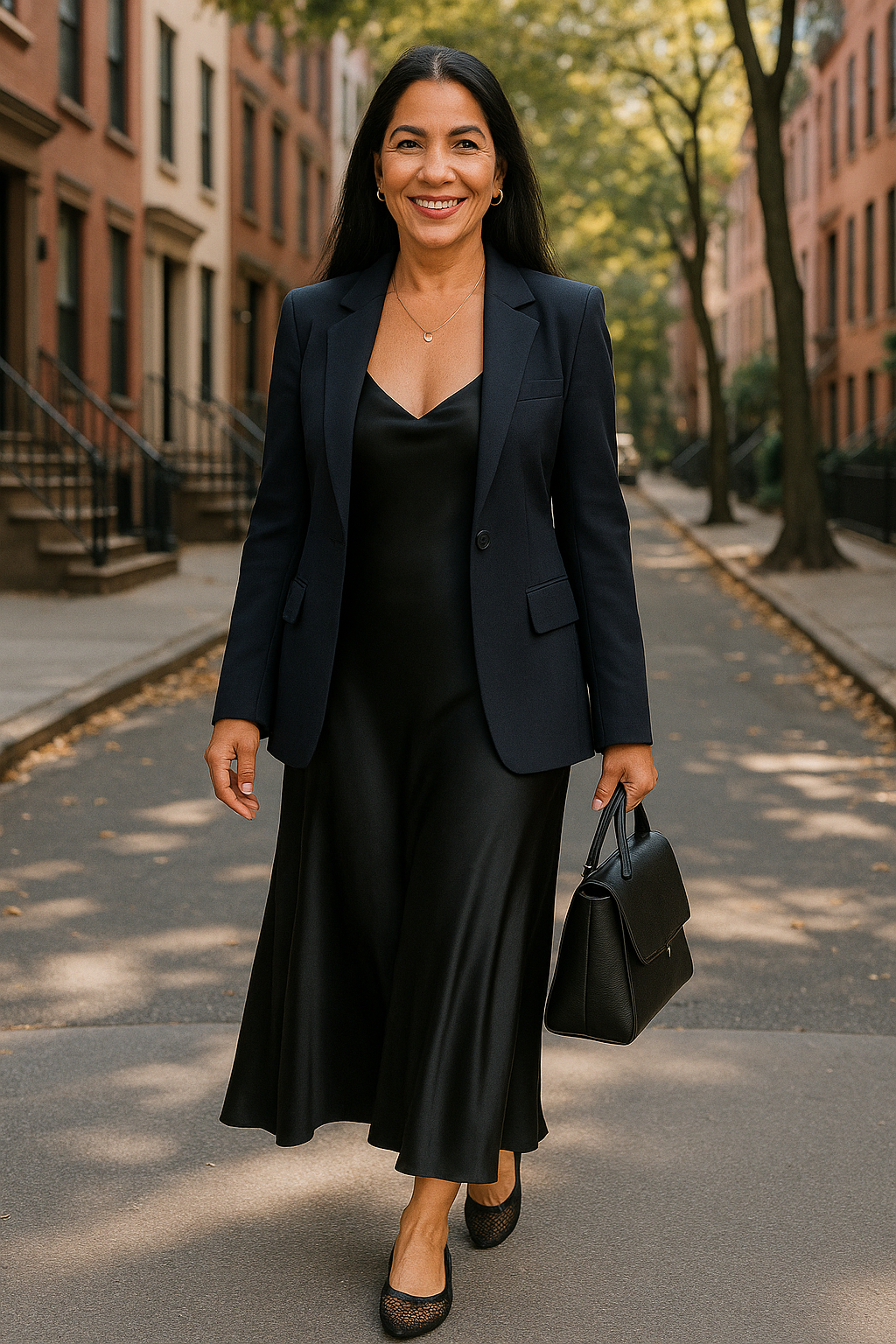 Pairing your slip dress with a structured blazer instantly makes the outfit feel tailored and polished. To dress down the look, pair it with shoes like flats, sandals, or sneakers.