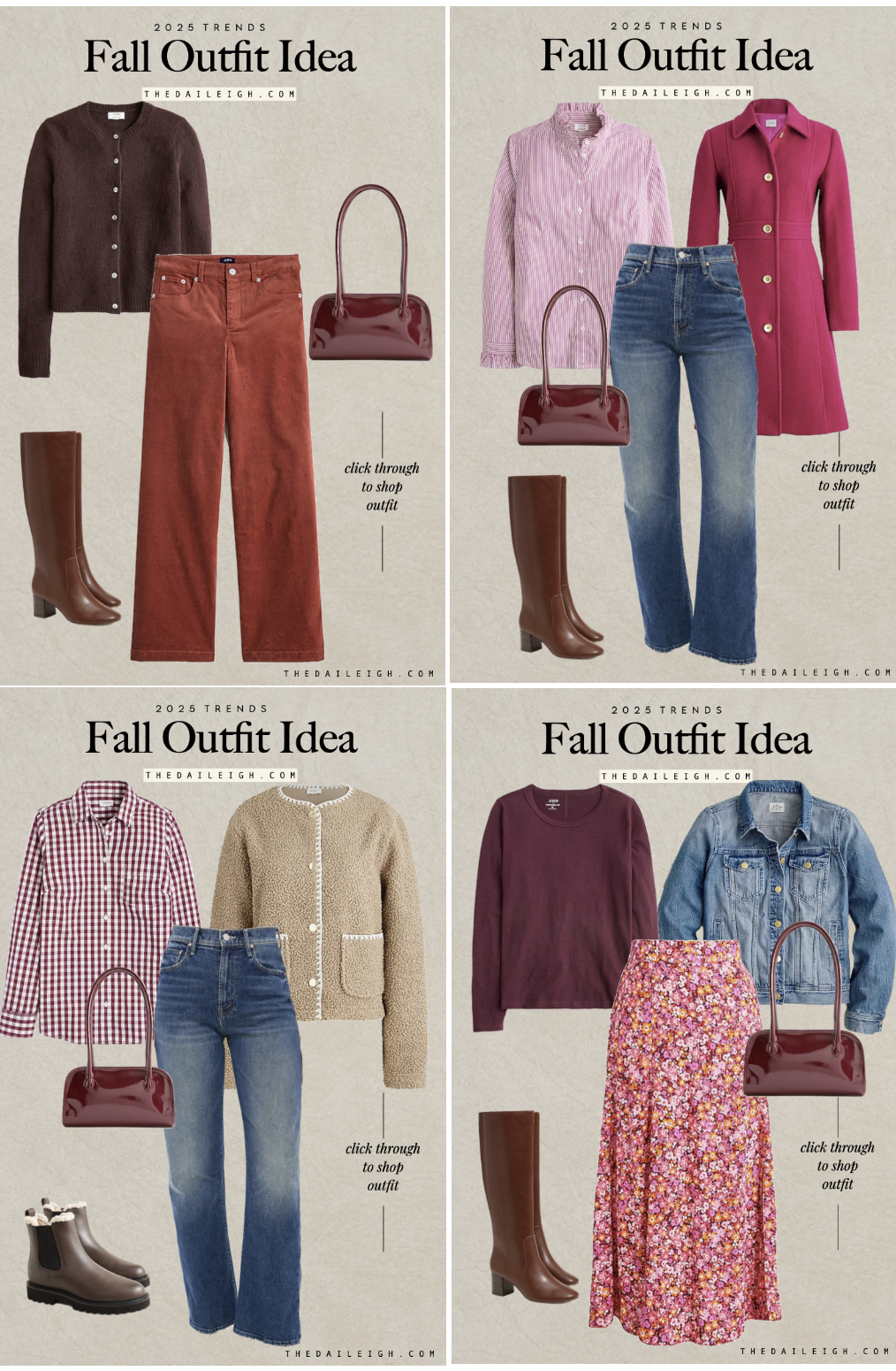 There’s something about fall colors—the way they blend so effortlessly and elegantly—that makes it hard not to embrace several hues at once. Shades of pink, burgundy, and brown create a look that feels unexpectedly chic yet perfectly on trend for the season.